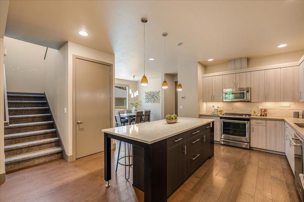 In the heart of NW Bend, stunning townhome offers lock-and-leave lifestyle with an ADU for income generation potential. This energy-efficient home blends clean lines, contemporary finishes, and an open-concept layout. The main house is approximately 1,800 sq ft of thoughtfully designed living space, with 3 bedrooms and 2.5 baths (primary has double sink vanity and walk-in closet). High-end finishes and appliances showcase the home's modern appeal; a beautiful kitchen island is a focal point for cooking and entertaining. The attached ADU is a self-contained studio apartment with a full kitchen and bathroom"”ideal for guests, rental income, or a private retreat. Also includes a generous 2-car garage and an extra storage unit. With yard care/snow removal handled by the HOA, this location delivers a low-maintenance, high-quality way of living. Walkable to the vibrant Newport Market and Galveston corridors, and close to downtown and Drake Park, putting the best of Bend at your doorstep.